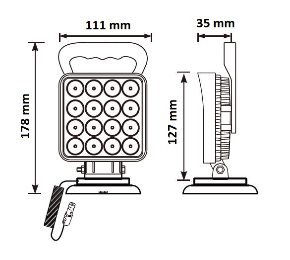 Světlo je vybaveno vypínačem a magnetem pro jednoduché připevnění na kovový povrch. Připojení pomocí krouceného kabelu s CL zástrčkou (do autozapalovače).