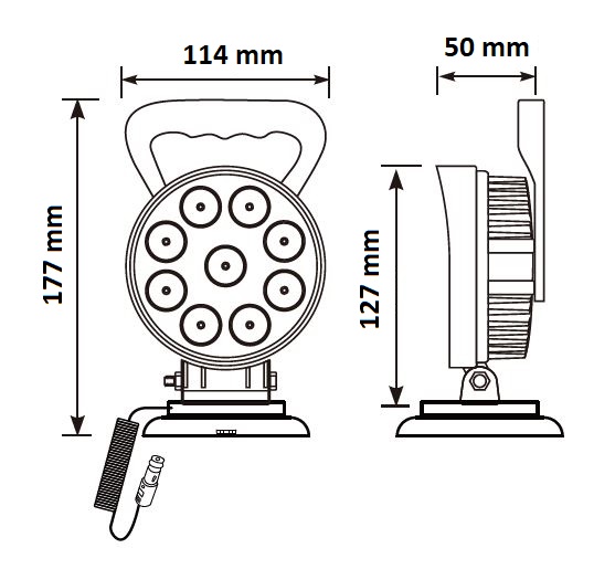 Světlo je vybaveno vypínačem a magnetem pro jednoduché připevnění na kovový povrch. Připojení pomocí krouceného kabelu s CL zástrčkou (do autozapalovače).