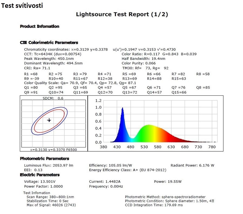 • světelný tok 3500 LM (RAW), 2053 LM (efektivní)