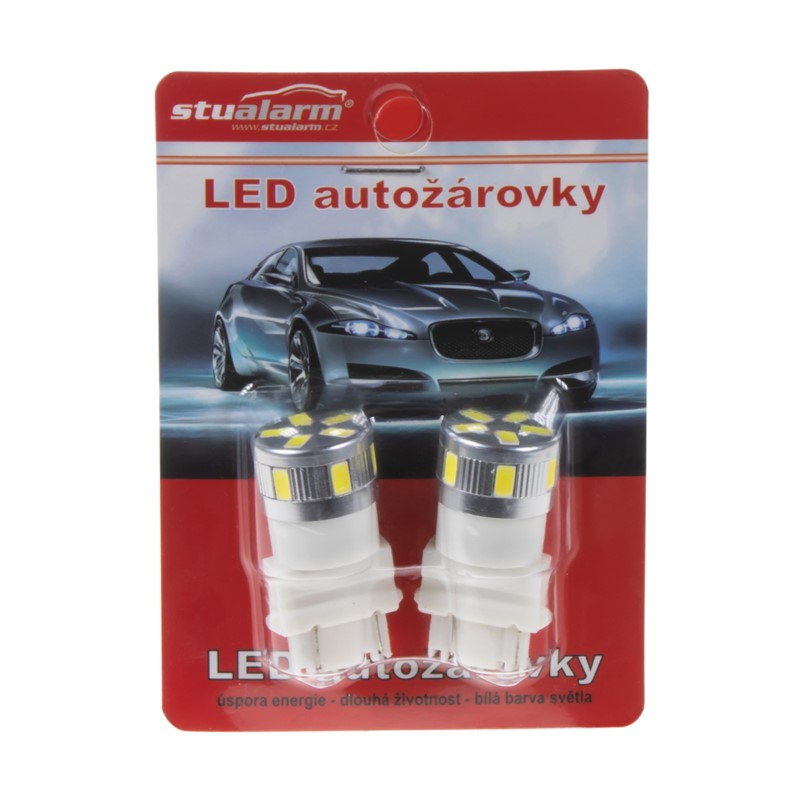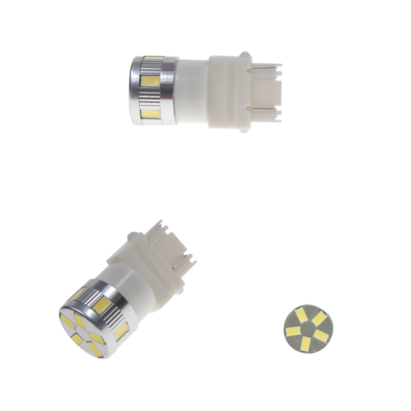 Nová generace LED autožárovek s paticí T20 3157, bílá, zepředu 5x super svítivý LED čip 5730SMD, z boku 6x LED čip 5730SMD.