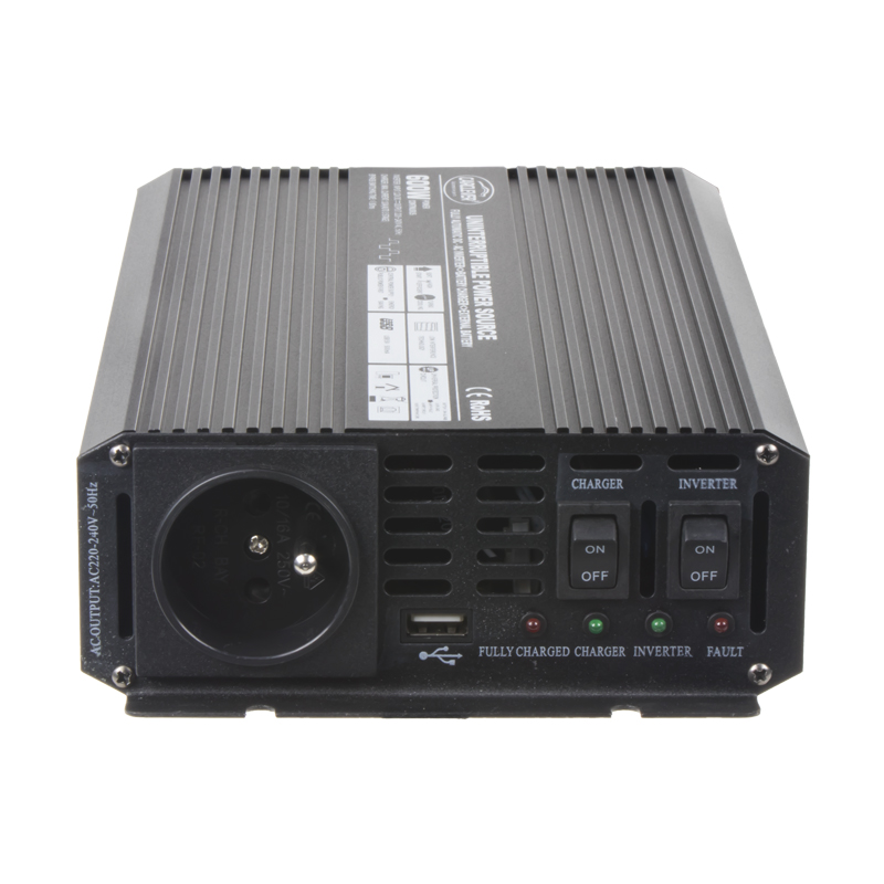 Měnič je zároveň vybaven zabudovanou nabíječkou a záložním zdrojem UPS.