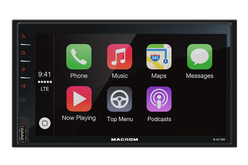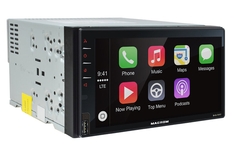 MACROM M-DL7000D je multimediální jednotka podporující funkce Apple CarPlay, Android Auto. DAB+ vestavěným tunerem, USB zadním a předním vstupem. Přístroj je vybaven kapacitním dotykovým monitorem 6,8 palců, vstupem pro couvací kameru (po zařazení zpátečky), vstupem pro ovládání z volantu. MACROM obsahuje Hands free sadu s externím mikrofonem. Pomocí 2DIN instalačního rámečku lze umístit do většiny typů automobilů.