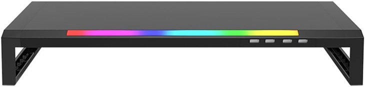Podstavec pod monitor;Materíál:Plast;Rozhraní:4xUSB(výstup),USB vstup;Přenosová rychlost:480 Mbps;Podsvícení Rainbow-4 různé efekty,přepínání pomocí dotykového tlačítka.;Funkce vypnutí podsvícení:Ano;Kompatibilní s:Windows, Mac OS, Android;Délka kabelu:1.6 m;Odolné provedení,protiskluzové podložky