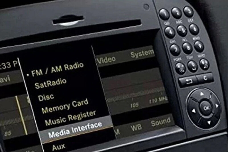 "Mercedes Media Interface" je zakončen konektorem umístěným na boku odkládací schránky před spolujezdcem, propojený s rádiem nebo navigačním systémem.