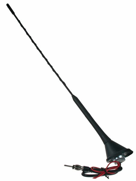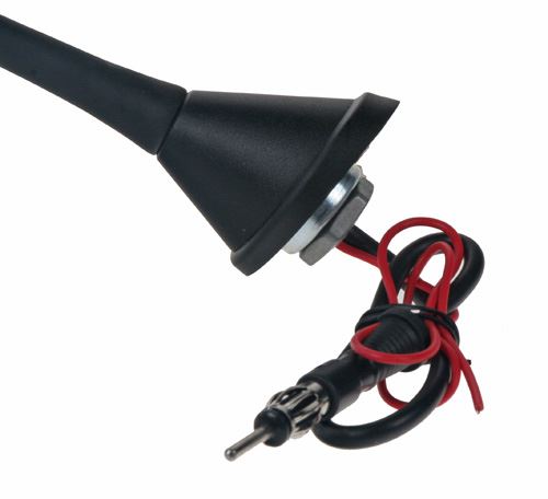 Krátký popis Univerzální střešní anténa AM-FM do zadní části střechy se zesilovačem.   Technické parametry • pevný úhel sklonu: 75° • černý laminátový prut s vnějším závitem M5 • délka 400 mm • kabel 300 mm s konektorem DIN samec • montážní otvor čtvercový 14,5 x 14,5 mm nebo kulatý průměr 19 mm