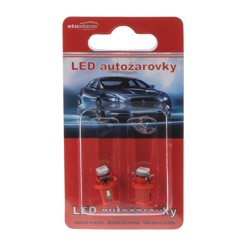 Náhradní LED žárovka s paticí B8,5d (BAX) červená, 1x 3-čipová SMD LED, použití např. do přístrojových desek.