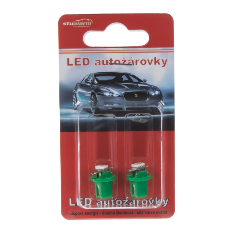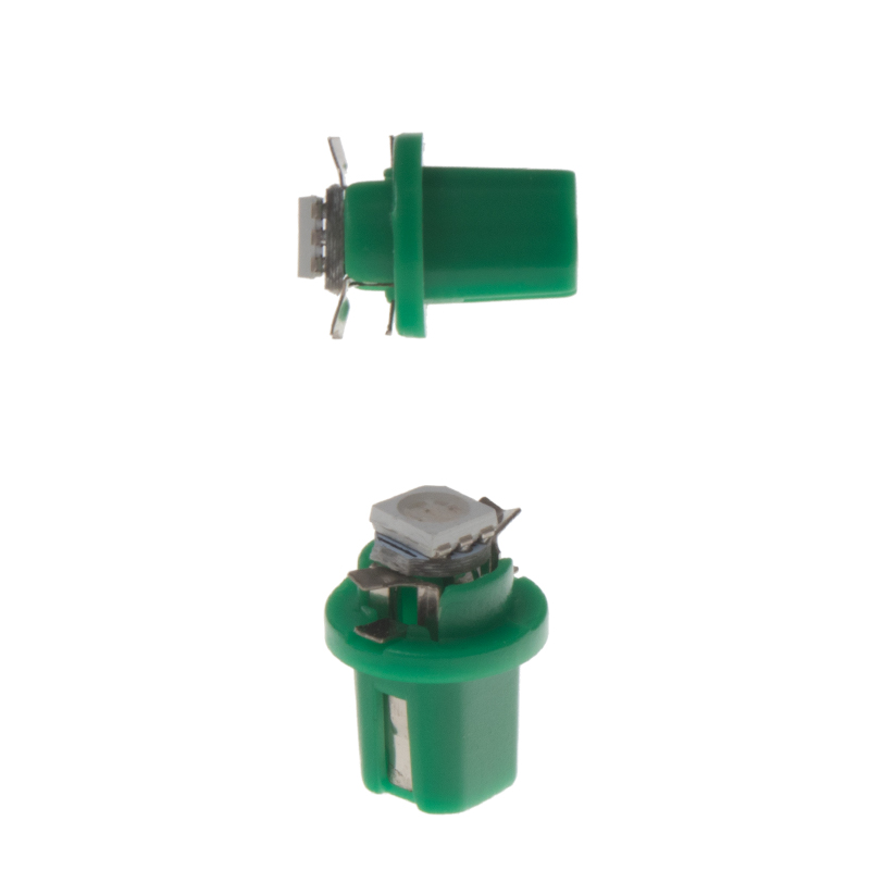Náhradní LED žárovka s paticí B8,5d (BAX) zelená, 1x 3-čipová SMD LED, použití např. do přístrojových desek.