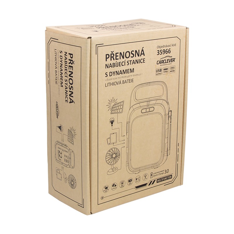 Přenosná nabíjecí stanice, pro nabíjení různých elektronických zařízení, nebo jako zdroj energie a světlo pro stanování či camping.