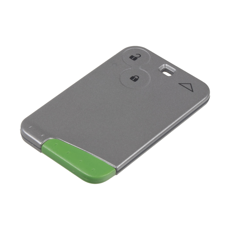 Náhradní karta s dálkovým ovladačem pro vozy Renault. Součástí karty je planžeta klíče, dálkové ovládání centrálního zamykání se třemi tlačítky (čip PCF7926). Tlačítka na kartě jsou částečně průhledná.