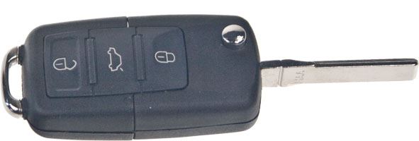 Náhradní vystřelovací autoklíč s dálkovým ovladačem pro vozy koncernu VW. Součástí klíče je planžeta, dálkové ovládání centrálního zamykání se třemi tlačítky a čip ID 48 pro imobilizér. Planžetu klíče je třeba nechat vyfrézovat podle tvaru originálního klíče, vyřezaný klíč s čipem je nutno naprogramovat do řídící jednotky vozu a dálkové ovládání je třeba spárovat s komfortní jednotkou vozu.