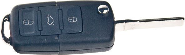Náhradní vystřelovací autoklíč s dálkovým ovladačem pro vozy koncernu VW. Součástí klíče je planžeta, dálkové ovládání centrálního zamykání se třemi tlačítky a čip ID 48 pro imobilizér. Planžetu klíče je třeba nechat vyfrézovat podle tvaru originálního klíče, vyřezaný klíč s čipem je nutno naprogramovat do řídící jednotky vozu a dálkové ovládání je třeba spárovat s komfortní jednotkou vozu.