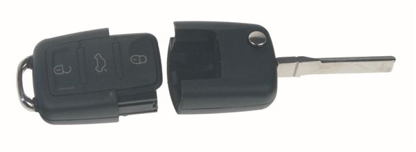Náhradní vystřelovací autoklíč s dálkovým ovladačem pro vozy koncernu VW. Součástí klíče je planžeta, dálkové ovládání centrálního zamykání se třemi tlačítky a čip ID 48 pro imobilizér. Planžetu klíče je třeba nechat vyfrézovat podle tvaru originálního klíče, vyřezaný klíč s čipem je nutno naprogramovat do řídící jednotky vozu a dálkové ovládání je třeba spárovat s komfortní jednotkou vozu.