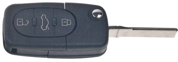 Náhradní vystřelovací autoklíč s dálkovým ovladačem pro vozy Audi. Součástí klíče je planžeta, dálkové ovládání centrálního zamykání se dvěmi tlačítky a čip ID 48 pro imobilizér. Náhrada originálního ovladače 4D0 837 231 A.