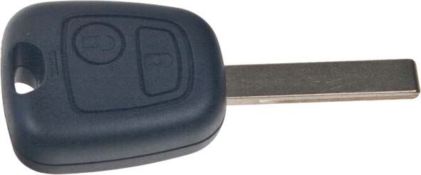 Náhradní autoklíč s dálkovým ovladačem pro vozy Citroën. Součástí klíče je planžeta, dálkové ovládání centrálního zamykání se dvěmi tlačítky a čip ID 46 pro imobilizér. Náhrada originálního ovladače.