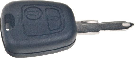 Náhradní autoklíč s dálkovým ovladačem pro vozy Peugeot. Součástí klíče je planžeta, dálkové ovládání centrálního zamykání se dvěmi tlačítky a čip ID 48 pro imobilizér. Náhrada originálního ovladače.