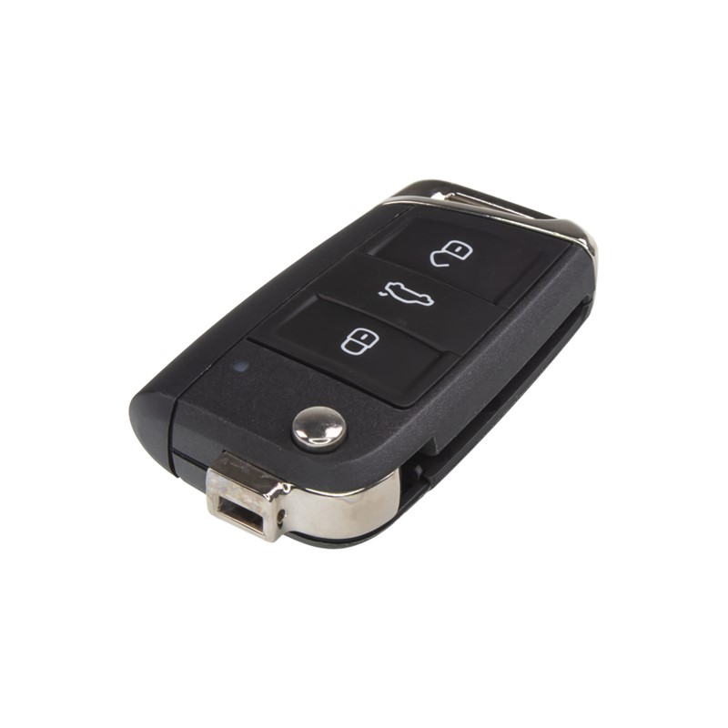 Náhradní autoklíč s dálkovým ovladačem pro vozy koncernu VW. Součástí klíče je planžeta, dálkové ovládání centrálního zamykání se 3 tlačítky a čip pro imobilizér. Planžetu klíče je třeba nechat vyfrézovat podle tvaru originálního klíče, vyřezaný klíč s čipem je nutno naprogramovat do řídící jednotky vozu a dálkové ovládání je třeba spárovat s komfortní jednotkou vozu.