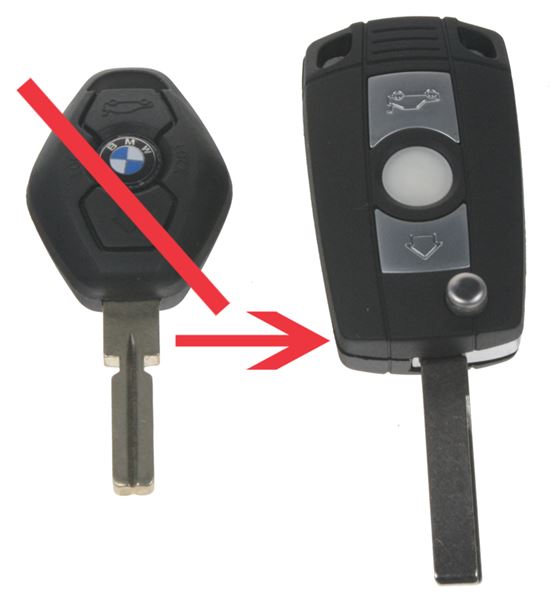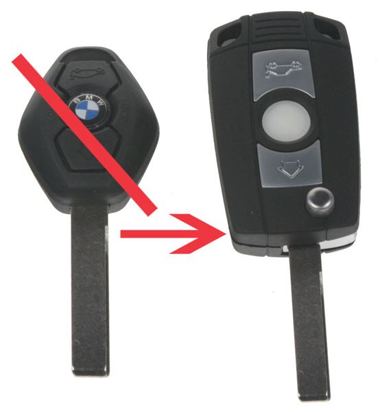 Náhradní obal klíče pro vozy BMW s 3-tlačítkovým ovladačem (bez elektroniky a čipu imobilizéru). Slouží pro změnu ze staršího nevystřelovacího klíče na novější verzi s vystřelovacím klíčem. Do klíče je nutno vložit z původního klíče elektroniku dálkového ovládání a čip imobilizéru (transpondér), planžetu klíče je třeba nechat vyfrézovat podle tvaru originálního klíče. Planžeta HU92.