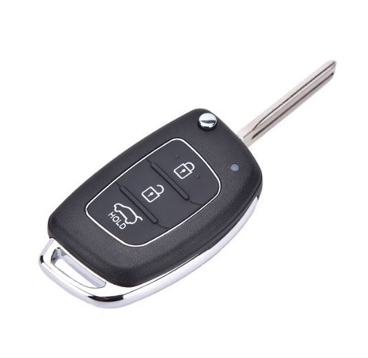 Náhradní obal vystřelovacího klíče pro vozy Hyundai, Kia s 3-tlačítkovým ovladačem (bez elektroniky a čipu imobilizéru). Do klíče je nutno vložit z původního klíče elektroniku dálkového ovládání a čip imobilizéru (transpondér), planžetu klíče je třeba nechat vyfrézovat podle tvaru originálního klíče.