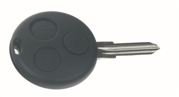 Náhradní obal klíče pro vozy Mercedes-Benz - Smart s 3-tlačítkovým ovladačem (bez elektroniky a čipu imobilizéru), planžeta klíče. Do klíče je nutno vložit z původního klíče elektroniku dálkového ovládání a čip imobilizéru (transpondér), planžetu klíče je třeba nechat vyfrézovat podle tvaru originálního klíče.