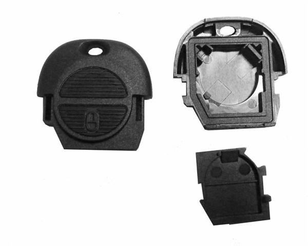 Náhradní obal klíče pro vozy Nissan s 2-tlačítkovým ovladačem (bez elektroniky a čipu imobilizéru). Do obalu je nutno vložit z původního klíče elektroniku dálkového ovládání a čip imobilizéru (transpondér).