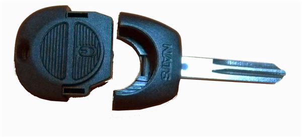 Náhradní obal klíče pro vozy Nissan s 2-tlačítkovým ovladačem (bez elektroniky a čipu imobilizéru). Do klíče je nutno vložit z původního klíče elektroniku dálkového ovládání a čip imobilizéru (transpondér), planžetu klíče je třeba nechat vyfrézovat podle tvaru originálního klíče.