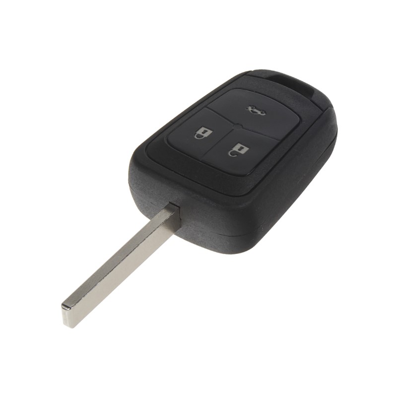 Náhradní obal klíče pro vozy Opel s 3-tlačítkovým ovladačem (bez elektroniky a čipu imobilizéru). Do klíče je nutno vložit z původního klíče elektroniku dálkového ovládání a čip imobilizéru (transpondér), planžetu klíče je třeba nechat vyfrézovat podle tvaru originálního klíče.