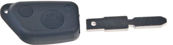 Náhradní obal klíče pro vozy koncernu Peugeot s 2-tlačítkovým ovladačem (bez elektroniky a čipu imobilizéru). Do klíče je nutno vložit z původního klíče elektroniku dálkového ovládání a čip imobilizéru (transpondér), planžetu klíče je třeba nechat vyfrézovat podle tvaru originálního klíče.