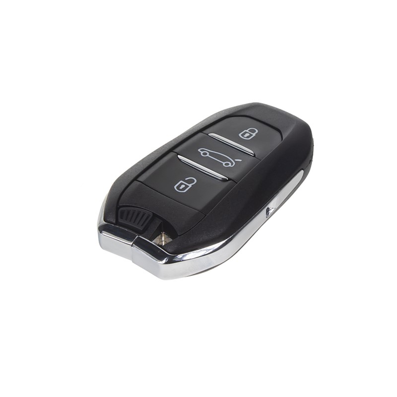 Náhradní obal vystřelovacího klíče pro vozy Citroën/Peugeot s novým 3-tlačítkovým vystřelovacím klíčem (bez elektroniky a čipu imobilizéru). Do vystřelovacího klíče je nutno vložit z původního klíče elektroniku dálkového ovládání, planžetu klíče je třeba nechat vyfrézovat podle tvaru originálního klíče.