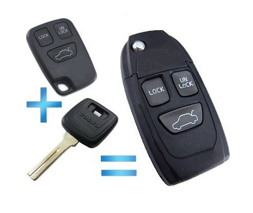 Náhradní obal vystřelovacího klíče pro vozy Volvo s 3-tlačítkovým ovladačem (bez elektroniky a čipu imobilizéru). Do klíče je nutno vložit z původního klíče elektroniku dálkového ovládání a čip imobilizéru (transpondér), planžetu klíče je třeba nechat vyfrézovat podle tvaru originálního klíče.