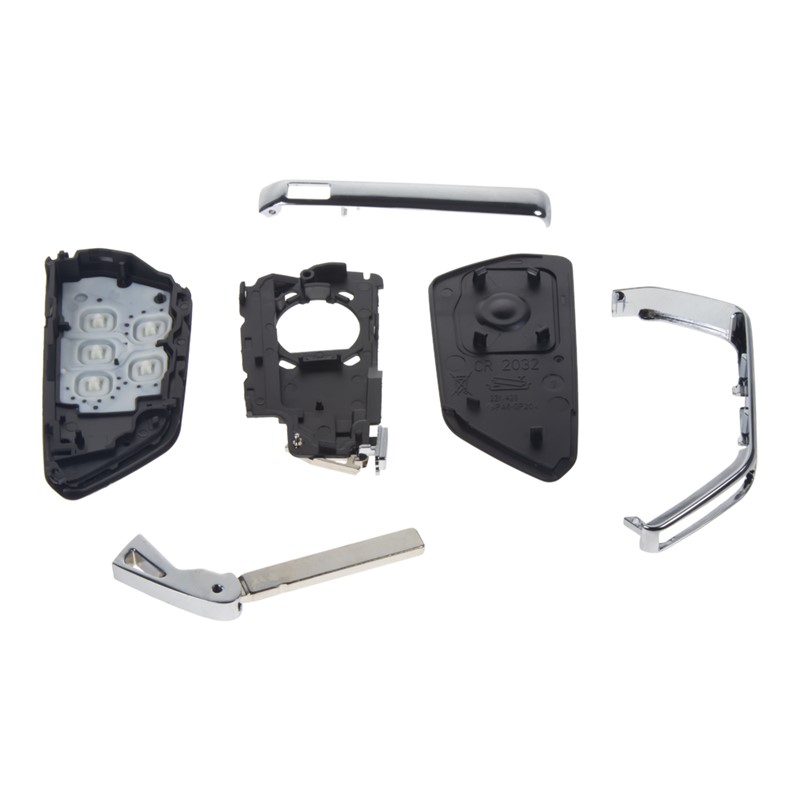 Náhradní obal klíče pro vozy koncernu VW (modely 2020-) s 3-tlačítkovým ovladačem (bez elektroniky a čipu imobilizéru). Do klíče je nutno vložit z původního klíče elektroniku dálkového ovládání a čip imobilizéru (transpondér).
