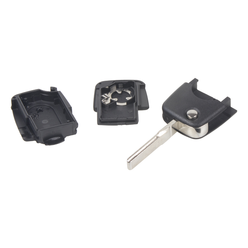Náhradní obal vystřelovacího klíče pro vozy koncernu VW s 2-tlačítkovým ovladačem s oválnými tlačítky (bez elektroniky a čipu imobilizéru). Do klíče je nutno vložit z původního klíče elektroniku dálkového ovládání a čip imobilizéru (transpondér), planžetu klíče je třeba nechat vyfrézovat podle tvaru originálního klíče.