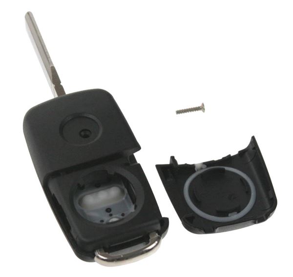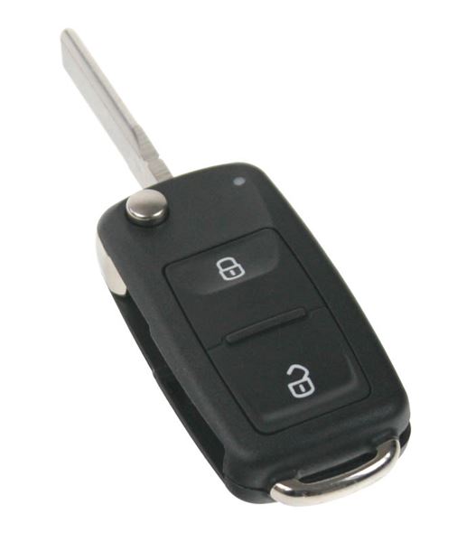 Náhradní obal vystřelovacího klíče pro vozy koncernu VW (modely 2011-) s 2-tlačítkovým ovladačem (bez elektroniky a čipu imobilizéru). Do klíče je nutno vložit z původního klíče elektroniku dálkového ovládání a čip imobilizéru (transpondér), planžetu klíče je třeba nechat vyfrézovat podle tvaru originálního klíče.