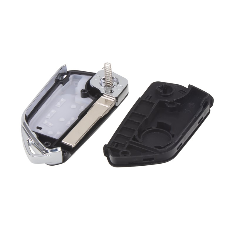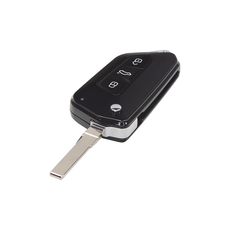 Náhradní obal vystřelovacího klíče pro vozy Volkswagen, Škoda a Seat s 3-tlačítkovým vystřelovacím klíčem(bez elektroniky a čipu imobilizéru). Slouží pro změnu ze staršího vystřelovacího klíče na nejnovější verzi s vystřelovacím klíčem. Do vystřelovacího klíče je nutno vložit z původního klíče elektroniku dálkového ovládání a čip imobilizéru (transpondér), planžetu klíče je třeba nechat vyfrézovat podle tvaru originálního klíče.