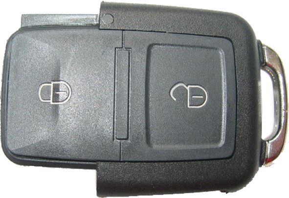 Náhradní obal dálkového ovladače centrálního zamykání pro vozy koncernu VW s 2-tlačítkovým ovladačem (bez elektroniky). Do ovladače je nutno vložit z původního klíče elektroniku dálkového ovládání.