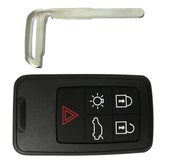 Náhradní autoklíč s dálkovým ovladačem pro vozy Volvo. Součástí klíče je planžeta, dálkové ovládání centrálního zamykání s pěti tlačítky a čip pro imobilizér. Náhrada originálního ovladače.