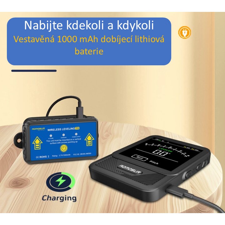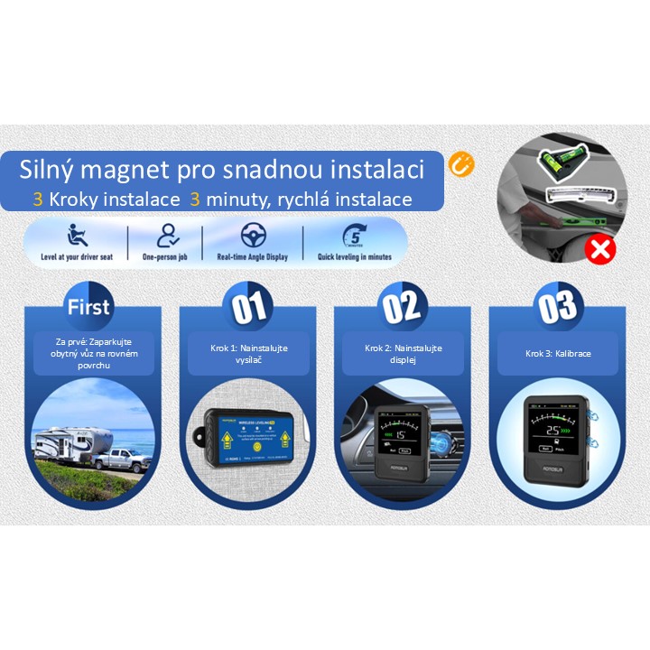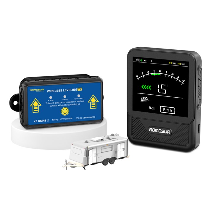 Náklonoměr pro karavany s bezdrátovým displejem je zařízení určené k měření náklonu vozidla, což usnadňuje jeho přesné vyrovnání na nerovném terénu.