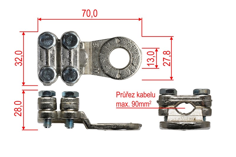 Krátký popis Napájecí kabelové oko Ø 13mm / kabel 90mm2
