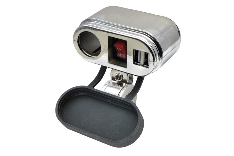 Krátký popis Napájecí modul pro motocykly - 2x USB zásuvka + CL zásuvka - stříbrná barva