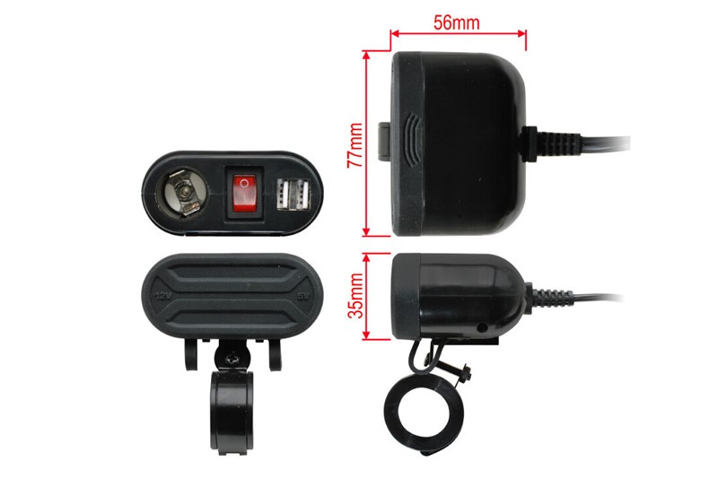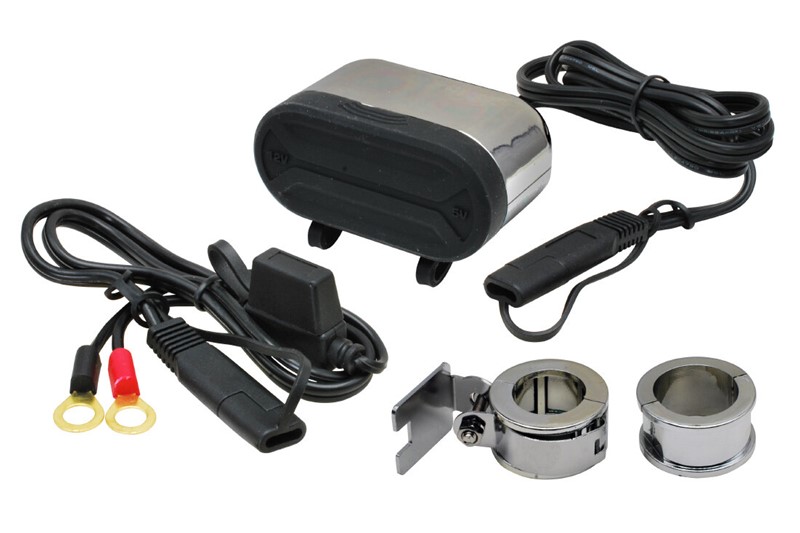 Voděodolný modul včetně kabelového svazku a pojistkového pouzdra určený pro upevnění na řídítka. Modul je vhodný pro nabíjení mobilního telefonu, navigace, interkomu a podobně.