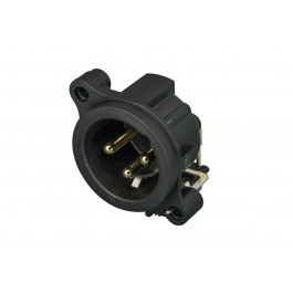 3-pólový XLR konektor, samec, uzemnění: samostatný kontakt pro spojení s panelem, montáž PBC pravá boční