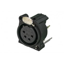 Krátký popis 4-pólový XLR panelový konektor, samice se stříbrnými piny a vertikální montáží