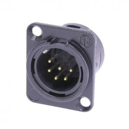 6-pólový konektor, samice, pájecí kelímky, černé kovové pouzdro, zlacené kontakty.