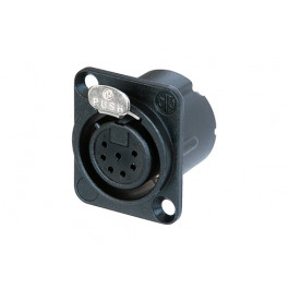 7-pólový konektor, samice, pájecí kelímky, černé kovové pouzdro, zlaté kontakty