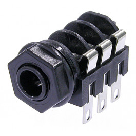 1/4" stereo jack, unswitched, with a full threaded nose and standard solder lugs, mounting nut included