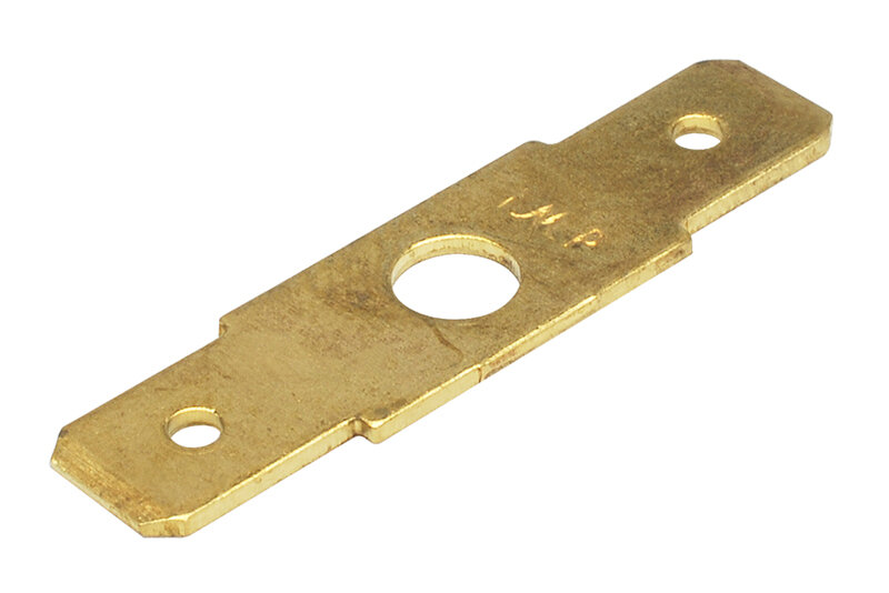 Krátký popis Nýt. konektor 6,3mm dvojitý rovný, mosaz, Ø otvoru 4,2mm, Balení 100ks