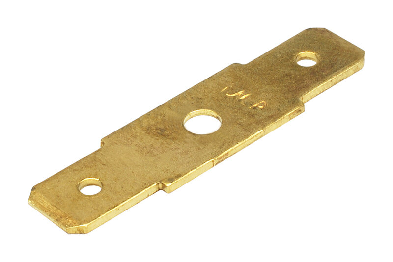 Krátký popis Nýt.konektor 6,3mm dvojitý rovný, mosaz, Ø otvoru 3,2mm, Balení 100ks