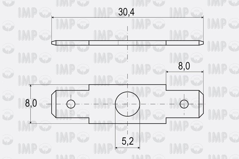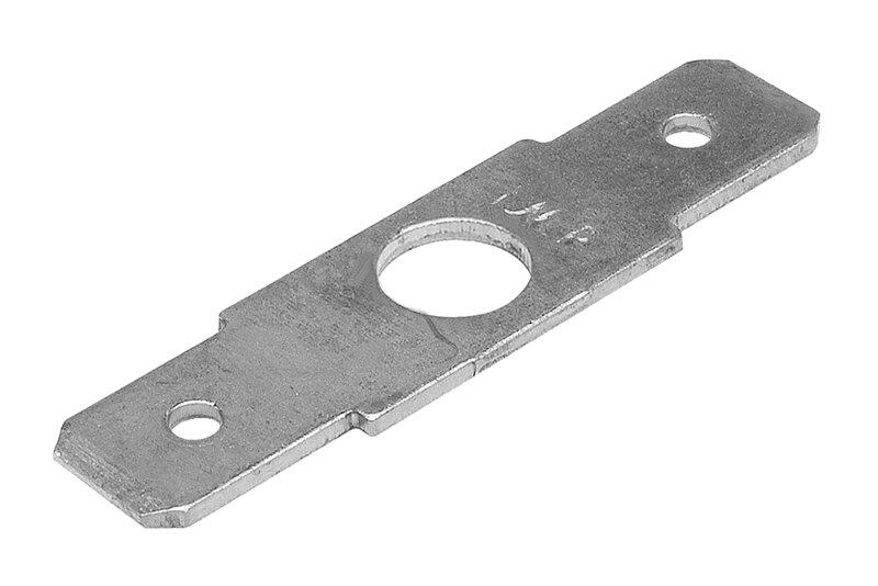 Krátký popis Nýt.konektor 6,3mm dvojitý rovný, cín.mosaz, Ø otvoru: 5,2mm, Balení 100ks
