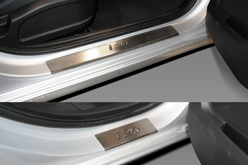 Ohranné kryty vnitřních prahů z nerezové oceli chrání prahy vašeho automobilu efektivně proti prohlubní a poškrábání při nastupování nebo vystupování z auta. Kromě toho dodávají modelu Hyundai i20 mimořádně luxusní vzhled.