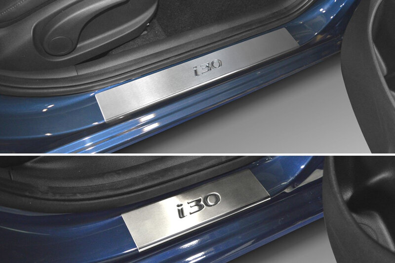Ohranné kryty vnitřních prahů z nerezové oceli chrání prahy vašeho automobilu efektivně proti prohlubní a poškrábání při nastupování nebo vystupování z auta. Kromě toho dodávají modelu Hyundai i30 (PD) mimořádně luxusní vzhled.
