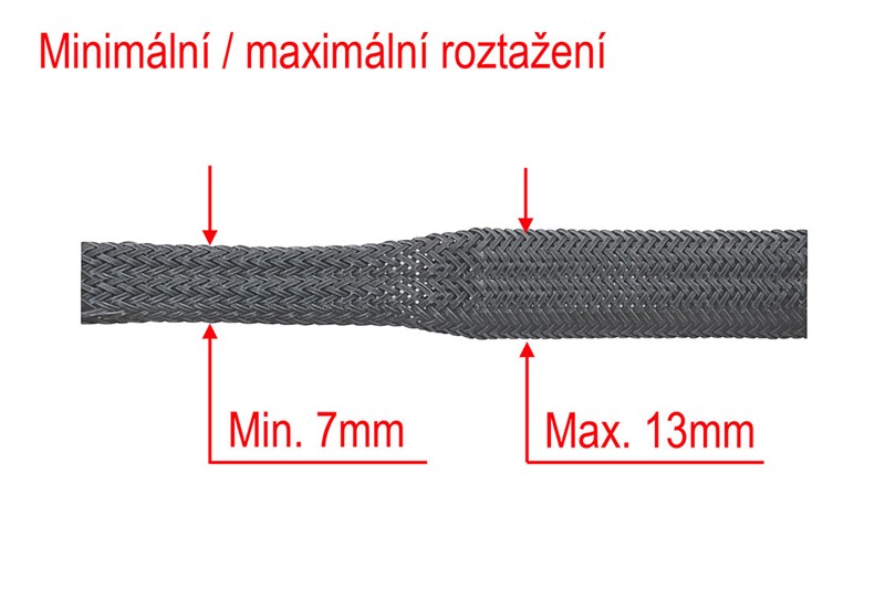 Ochranný oplet slouží pro mechanickou, flexibilní ochranu kabelových svazků. Vyrobené z polyesterových vláken spletených do kříže, které umožňují flexibilní roztažení a obepnutí nerovností v kabelovém vedení.